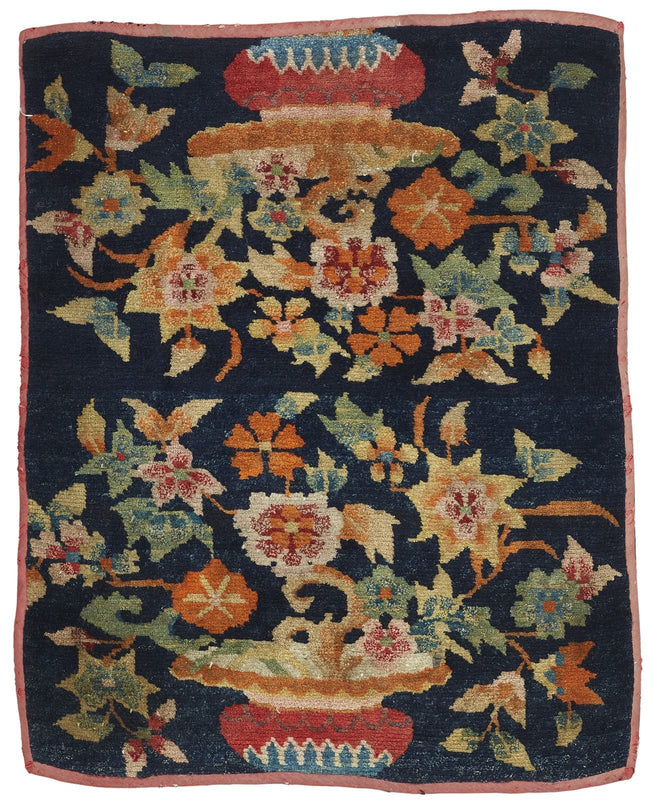 This exquisite sitting rug featuring a flower vase motif is a testament to the rich heritage of Tibet, handcrafted from 100% wool in Tibet and impeccably knotted with care. Its timeless beauty and exceptional quality make it a must-have for any discerning collector.