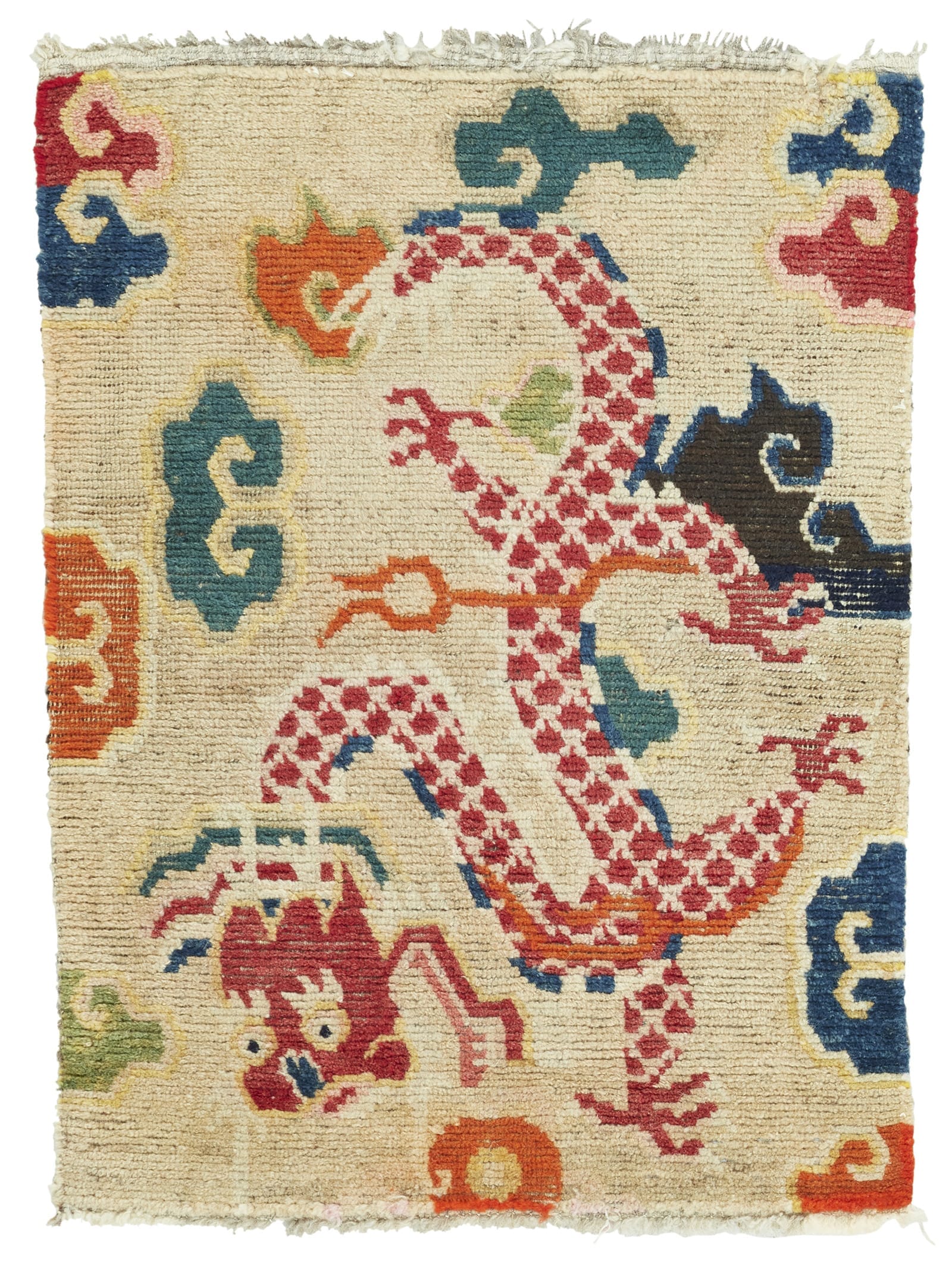 ANTIQUE TIBETAN SITTING RUG 1' 10" x 2' 5" 19 C