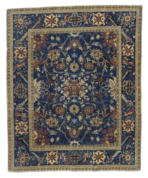 A handmade traditional Armenian Tabriz weave rug in blue, Arax #168 is an exquisite traditional Armenian rug hand-knotted of 100% wool using our Tabriz weave. The pile height is about 0.28 inches, similar to our Tibetan Shakti weave and boasts a soft, luxurious feel. This is a one-of-a-kind colorway for this popular classic Tufenkian design.