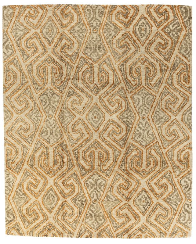 This geometric design was created in our Homespun weave, for a pile height under 1/2". A one-of-a-kind design sample, this rug is only available as an 8'x10'. Arenas Grey Copper is 100% Tibetan wool, made in Nepal.