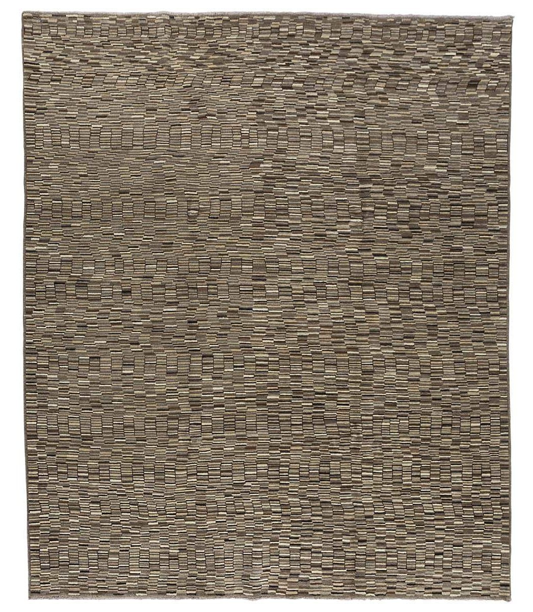 This one-of-a-kind piece was hand knotted using 100% Armenian wool in the traditional Gabbeh style. It measures approximately 8' x 10'.