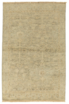 An oushak version of the detailed Arts and Crafts border rug Bidjar with subdued tones of beige, tan, gold and grey. This single small rug will complement many of our Armenian oushak rugs where the rug needs to a quiet player with the décor of a room.