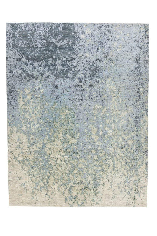 A design sample produced in consideration for our Sculpted Collection, this all wool rug has purple, lavender grey, sandy taupe, warm beige, moss and sage. This hand knotted rug was only produced in the 8 x 10 size.