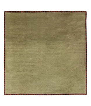 A transitional Shakti weave handmade rug, this Check Border rug is a custom size of a design by Barbara Barry. Check Border was hand-knotted in Nepal of 100% wool with a pile height under 1/2". This custom rug is a one-of-a-kind and only available in the 11'7" x11'8" size.