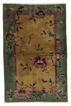 ANTIQUE CHINESE PEKING GREEN/GOLD 3' 3" x 4' 8" (part of pair)