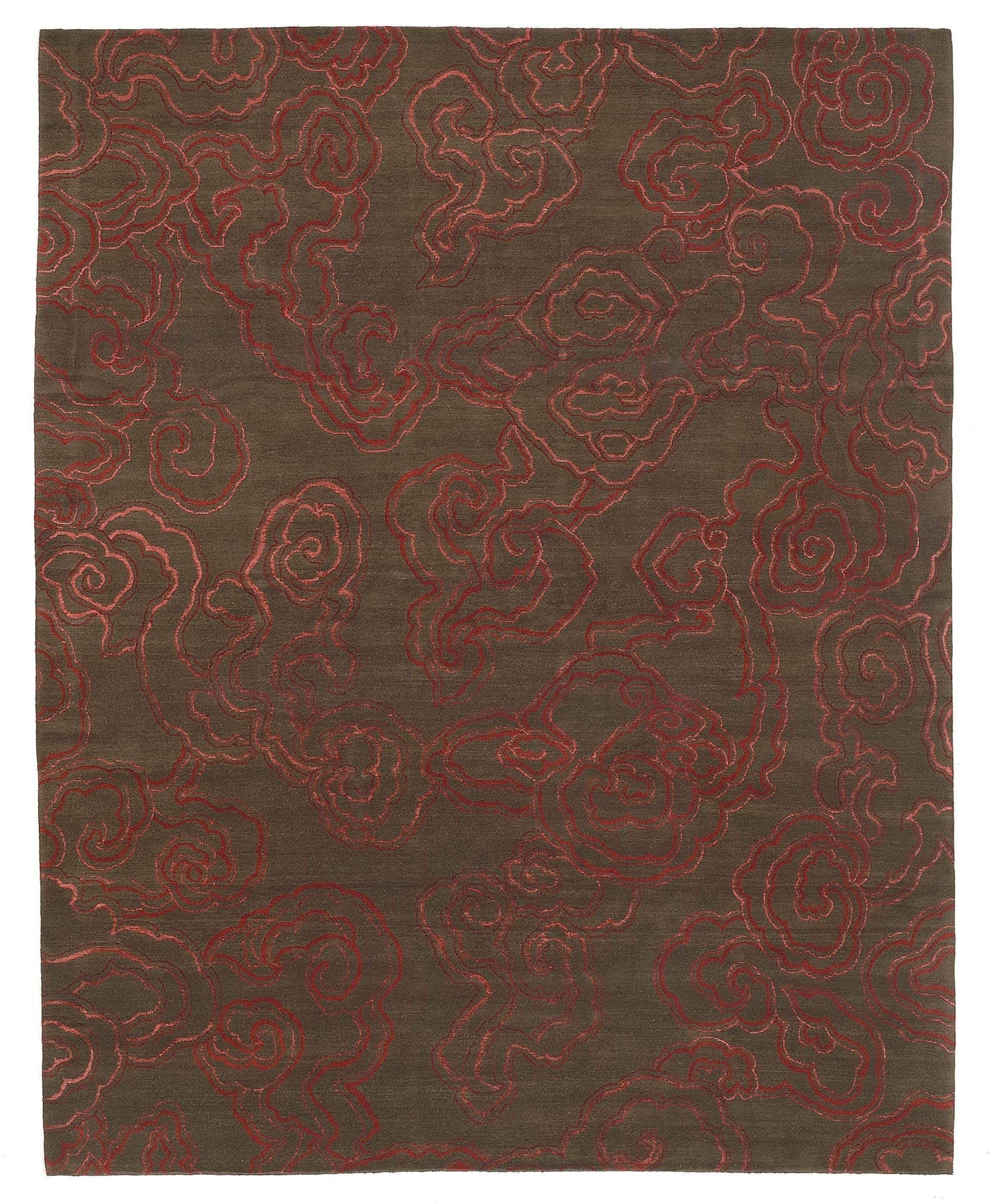 Cloud Nine is a graceful and beautiful Asian influenced design, on the border of dream-like with abstract cloud motifs. This rug was hand knotted in Nepal of the finest Himalayan wool and silk using our premium Shakti quality weave. The pile has an average height of 0.28 inches with a luxurious and extremely soft texture. The wool field is a warm mocha with accents in light and dark tones of crimson silk.