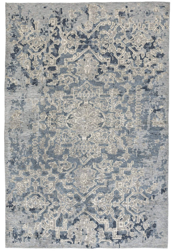 This beautiful, cool-toned design was crafted in India in 100% wool. Only available as a 6x9, this one-of-a-kind design sample is the ideal piece to infuse a modern sensibility into a room's decor, while preserving a touch of traditional style.