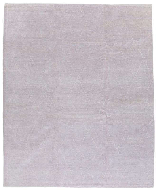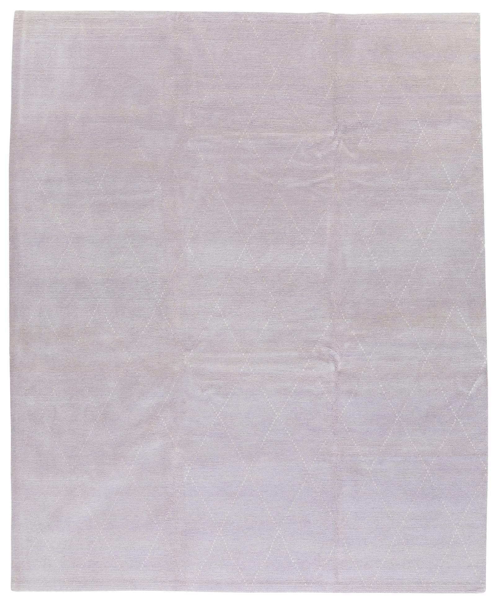This Barbara Barry design was handcrafted in Tibet of wool and silk in our Timpa weave. Created as a color prototype, this simple yet elegant geometric design features an icy-toned field with silk accents. This design was created only in the 2x3 and 8x10 sizes.