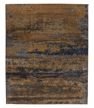 A modern Kotana weave rug in blue and gold. This carpet is a one of a kind design which was handcrafted in Nepal as a sample. It was made of 100% Tibetan wool using our Kotana quality construction with a pile height around 0.41 inches. This carpet measures 8 x 10.