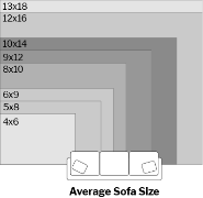 To determine the right rug size for your space, consider the size of the room and the furniture groupings your room contains. This grid shows some common rug sizes in relation to a typical sofa. Always start by measuring your room and your furnishings.Learn More