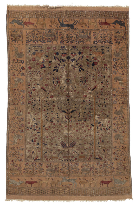 FINE AFGHAN KUNDUZ WOOL & SILK TREE OF LIFE 3'9" X 5' 11"