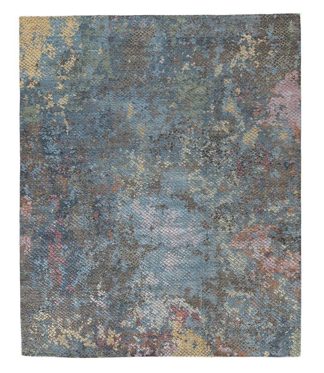Among our most opulent offerings, our Urban Fresco rugs are hand-knotted in India using a Persian knotting style. These rugs demand around 3000 man-hours to craft, from yarn dying to final completion. Meticulously constructed from a combination of wool and silk, the unique vintage appearance is achieved through an oxidation process, which results in the wool having a lower pile than the silk threads. This distinctive effect contributes to a well-worn and vintage motif. Remaining sizes of Foundry Dusk are now available at a discount in our Archive Sale collection.
