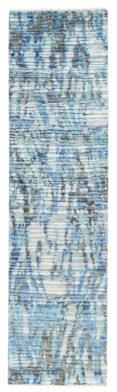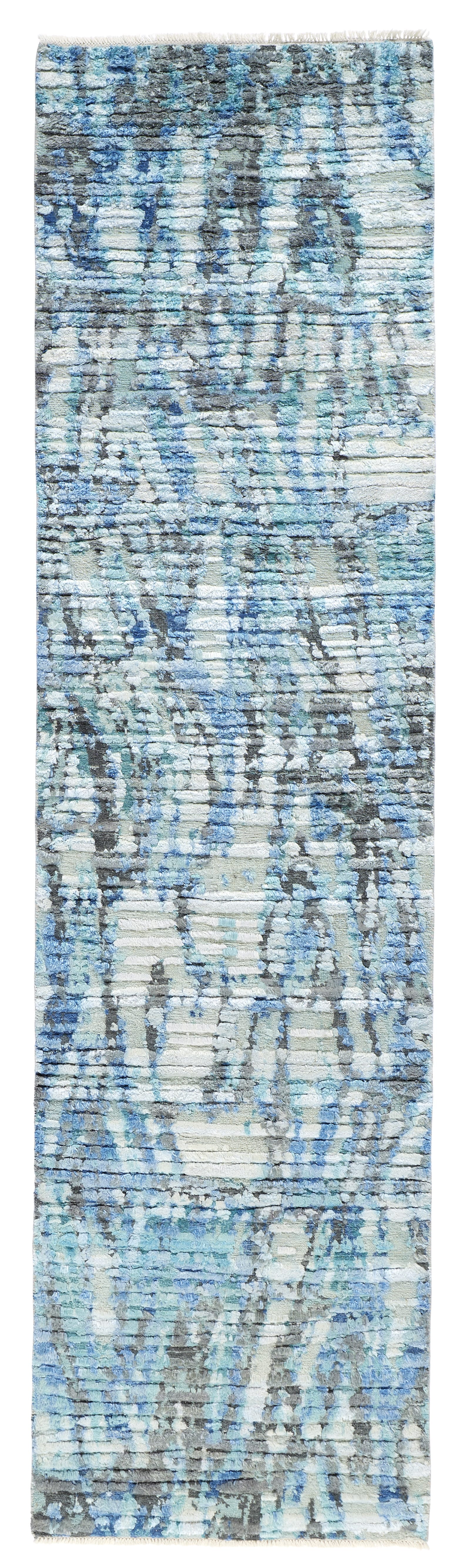 Experience luxury with our exclusive Gossamer Teal 3x10 runner, showcasing a one-of-a-kind design in a stunning high-low texture. Our skilled artisans have combined hand spun silk with oxidized wool for a unique finish, creating a sophisticated and elegant colorway only available in this runner size. Indulge in the beauty and richness of our Gossamer Teal runner.