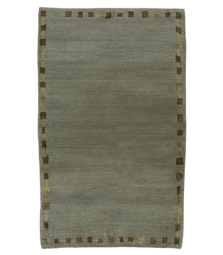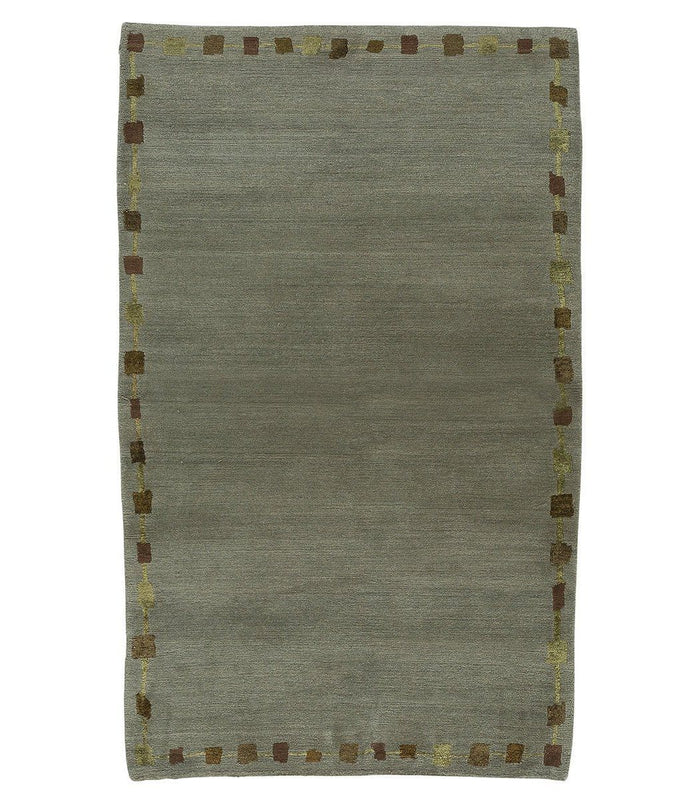 A contemporary wool and silk Shakti weave handmade rug. Icecube Border Lac is a border solid rug which is adorned with a simple yet elegant silk border. Icecube Border Lac was hand knotted in Nepal using our Shakti weave, the average pile height is about 0.28 inches and has a smooth and luxurious finish. The field of this rug is a cool blue green and the border incorporates honey yellow and sienna brown. Icecube Border Lac is available in a variety of sizes ranging from accent rugs to room size rugs, making it easy to find the perfect size for your room.