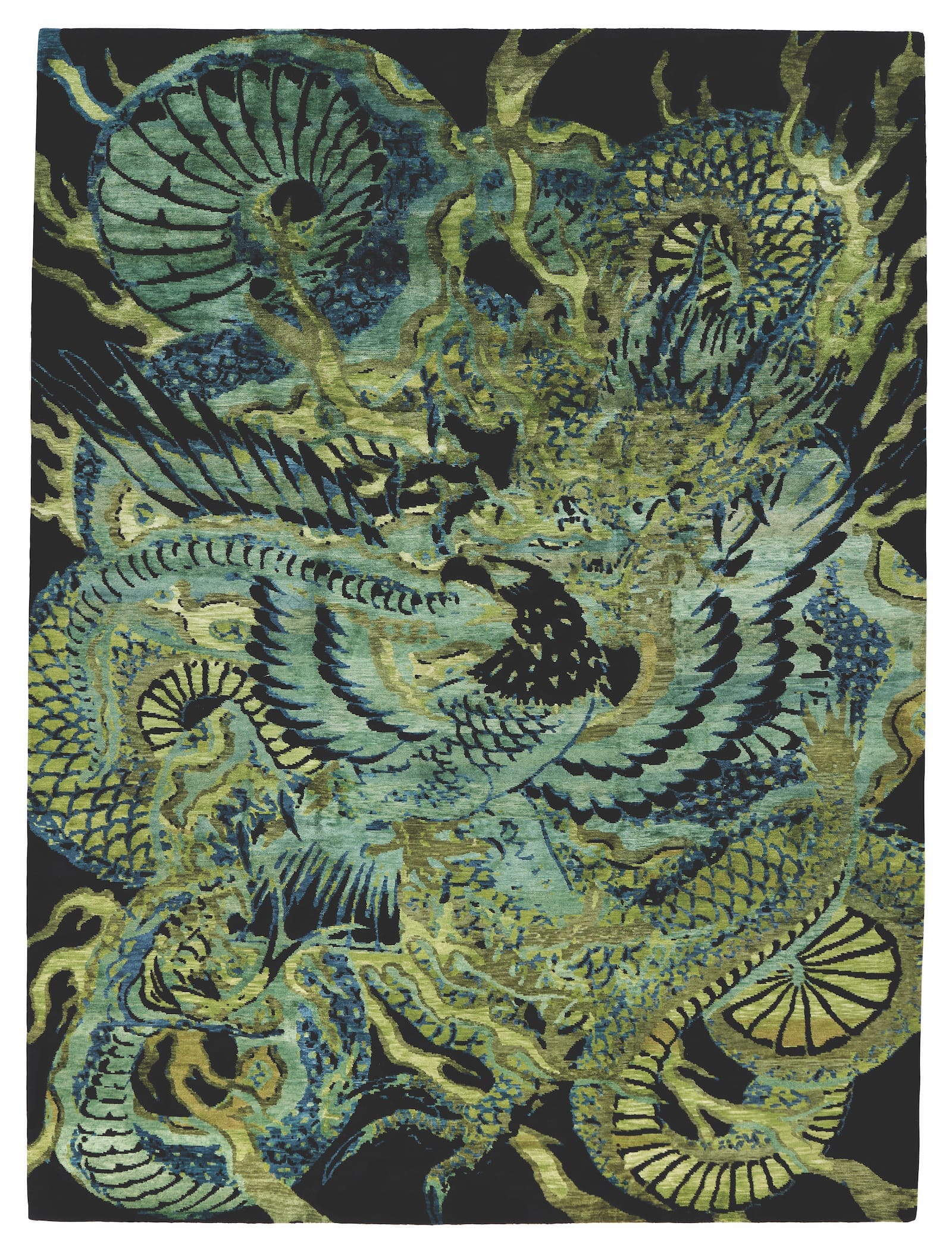 Strong, dramatic and bold, Kaida was created for the most luxurious of sensibilities. Hand knotted with a high percentage of hand spun silk, this rug design features a rolling, emerald green dragon - a classic symbol of good luck and great prospects. Part of our Rebel Silk Collection, Kaida Emerald is available in our standard room sizes; custom sizes, runners, squares and rounds available. Our rugs are normally available for delivery within 10 to 90 days. Contact us or Request a Quote for timing on the rug and size of your choice.