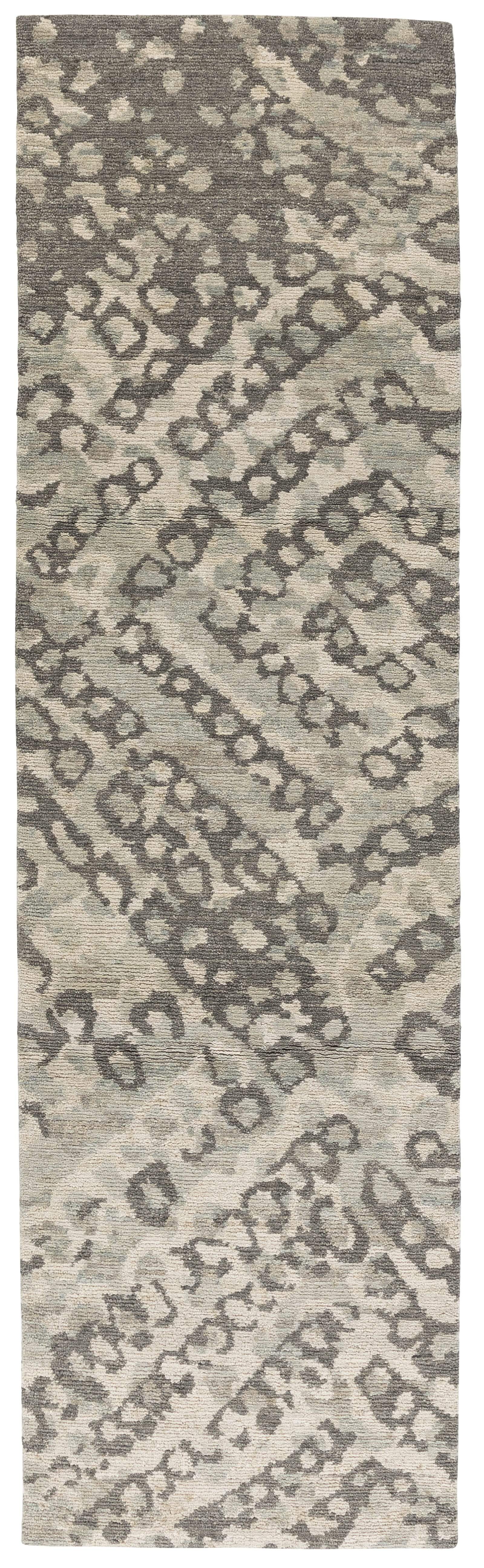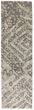 Kawakubo Birch is a highly textural rug with organic variations in its color palette. Woven with high and low pile, the dove and steel and grey chevron pattern rises above a white field. Kawakubo Birch is a one-of-a-kind sample piece, and hand knotted using 100% Himalayan wool. It measures approximately 3' x 10'.