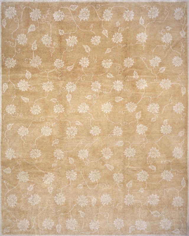 A floral wool and silk Shakti weave rug, this even, mature floral that won’t overpower a room. The Lotus & Vine rug is made from 75% Tibetan wool and 25% silk, an elegant design with a shimmering pattern.