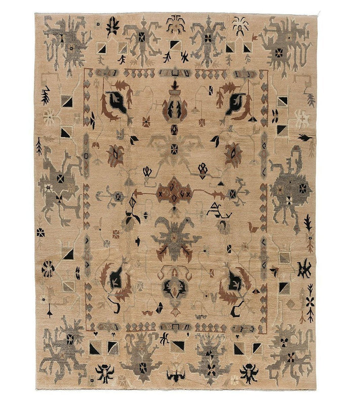 A timeless, traditional carpet that dances across the floors in this rich colorways filled with engrossing motifs. Marash begins a story to be continued by the next generation. Heirloom quality and artisan handcrafting create a treasure for the future. A light, fawn field detailed toffee brown and warm grey accents enliven the design and keep attention on the floors. This design is hand knotted of 100% Tibetan wool using our Setana weave, giving it an approximate pile height of 0.55 inches.
