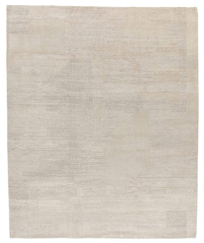 Marlowe Ivory is a one of a kind color sample from our Norse Collection. This colorway is only available as a 8'x10'. This piece was hand knotted of 100% wool in Nepal using our Homespun quality. This carpet features varying neutral tones to create a subtle geometric pattern.