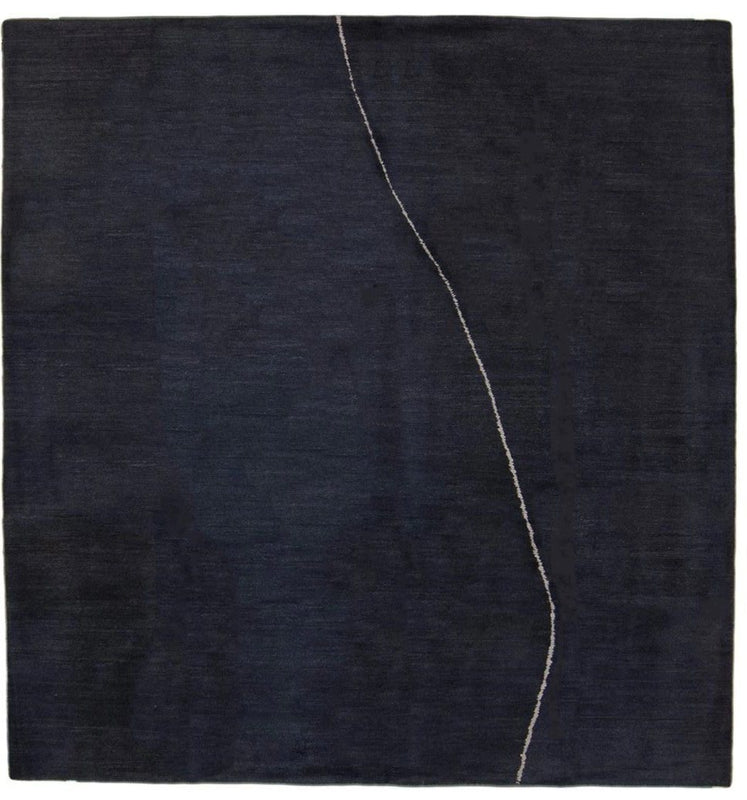 Midnight Ribbon is a one-of-a-kind custom rug, a piece made with the same quality and care as all of our carpets. This modern piece reflects a superb fluidity of design and color. This rug measures approximately 11'4" x 11'4" and was hand knotted using our Lama weave. This 100% Tibetan wool rug has pile height of approximately 0.45 inches.