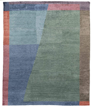 Miramar Teal is a one of a kind color sample from our Cubiste Collection. This hand knotted mid century style rug is made of 100% Tufenkian Bamboo Silk for a soft hand and lustrous finish. This colorway is only available as an 8x10, but could also be ordered in other sizes with a lead time of 6 months. Contact your sales person for more information on our custom capabilities.