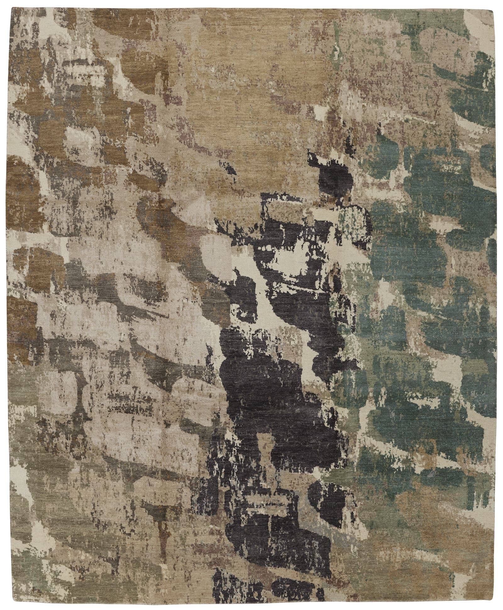The MONTAGUE CARAMEL 8 X 10 is a premium wool rug made in India, featuring a painterly abstract pattern with brown, beige, charcoal and green. This high-quality rug adds a touch of sophistication to any room in your home.