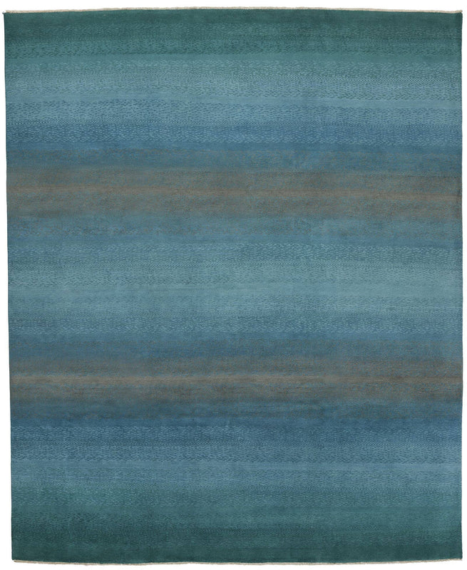 OCEAN TWILIGHT 8 X 10 is a wool production sample from India featuring a range of sky and ocean blues with greys in an ombre pattern. Composed with inspiration from our Twilight Collection, this beach house rug is a stylish addition for any home.