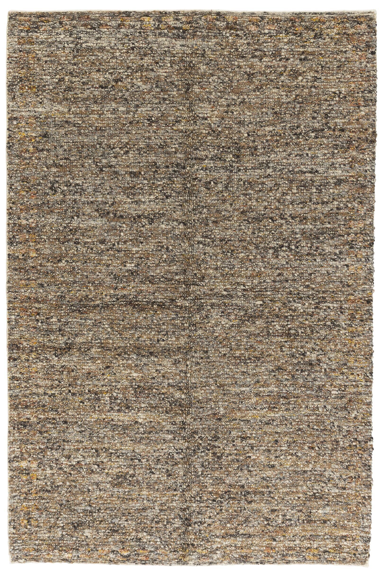 Pebble Tawny is a hand knotted wool rug alternative to the popular sisal or jute designs, boasting a unique textural pile and 100% wool construction. Its rich river rock colors – including grays, browns, ochre, moss green and gold to charcoal – feature beautiful abrash of natural mineral pigments. This production sample has a cut size of 5' 6" x 8' 6".