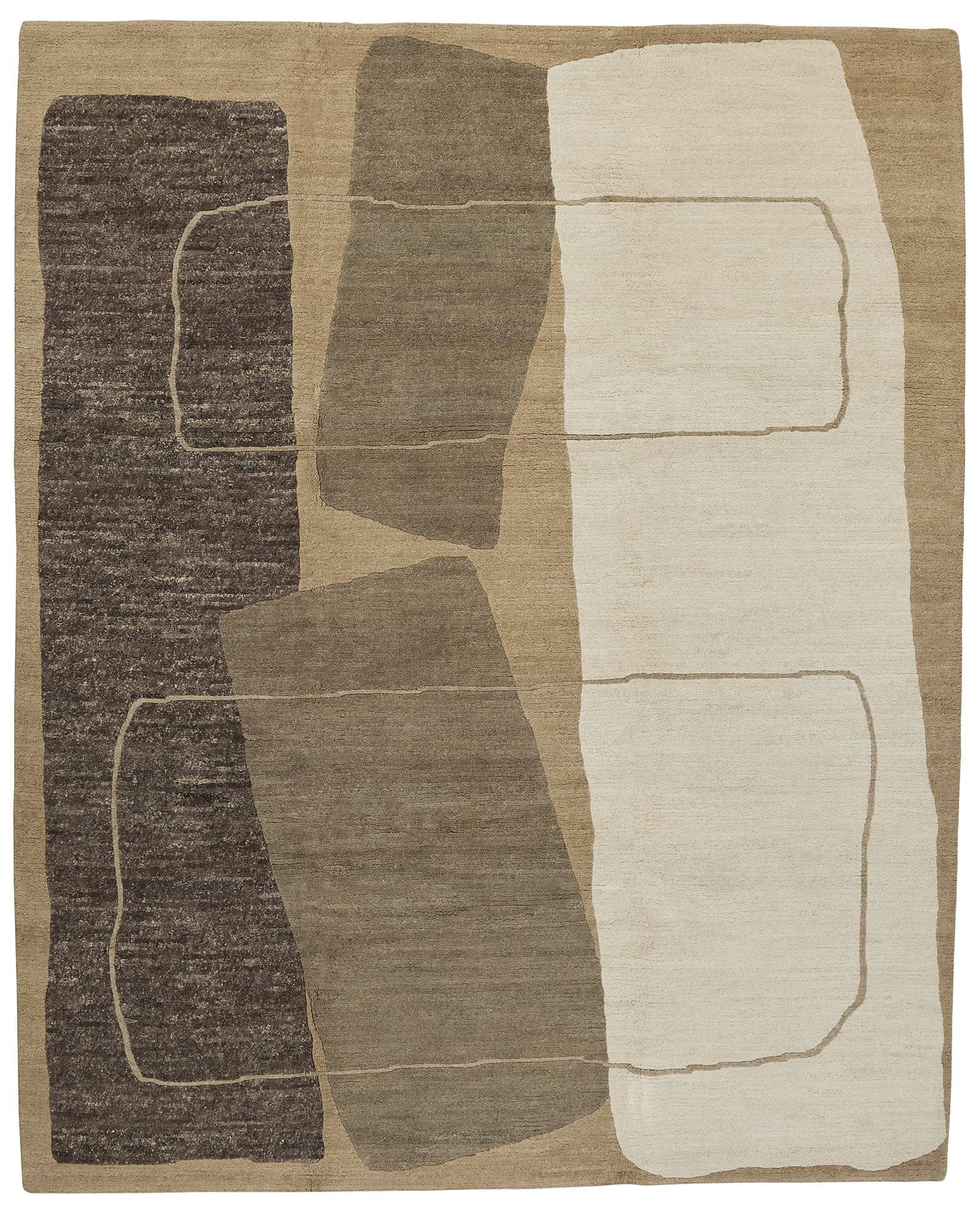 The PEDESTAL WINTERMOON 8 X 10 rug is a modernist expressionist piece ideal for any contemporary home. Hand-knotted using neutral tans and taupes, as well as un-dyed natural Tibetan wool yarns, this timeless piece exudes elegance and luxury. Enjoy this rug's luxuriously soft texture and playful design. This unique colorway is a one-of-a-kind version of our Portal design.
