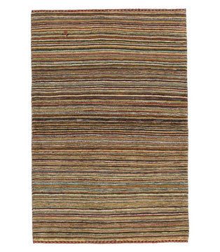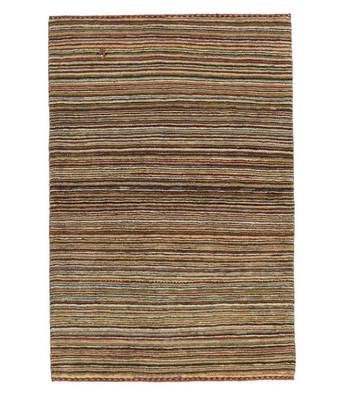 This multicolored Persian gabbeh was hand knotted using vegetable-dyed Persian wool. This one-of-a-kind piece measures 3'3"x4'10".