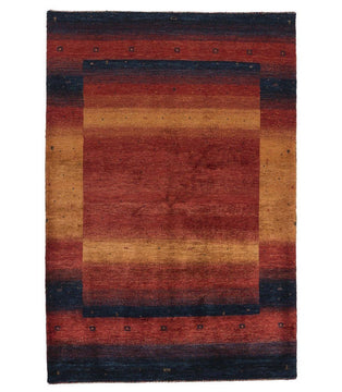 Hand knotted using 100% vegetable-dyed Persian wool, this gabbeh carpet's bright colors and bold contrast make it a great accent piece. Stripes rendered in an ombre effect add interest and whimsy. It measures approximately 4'x6'.