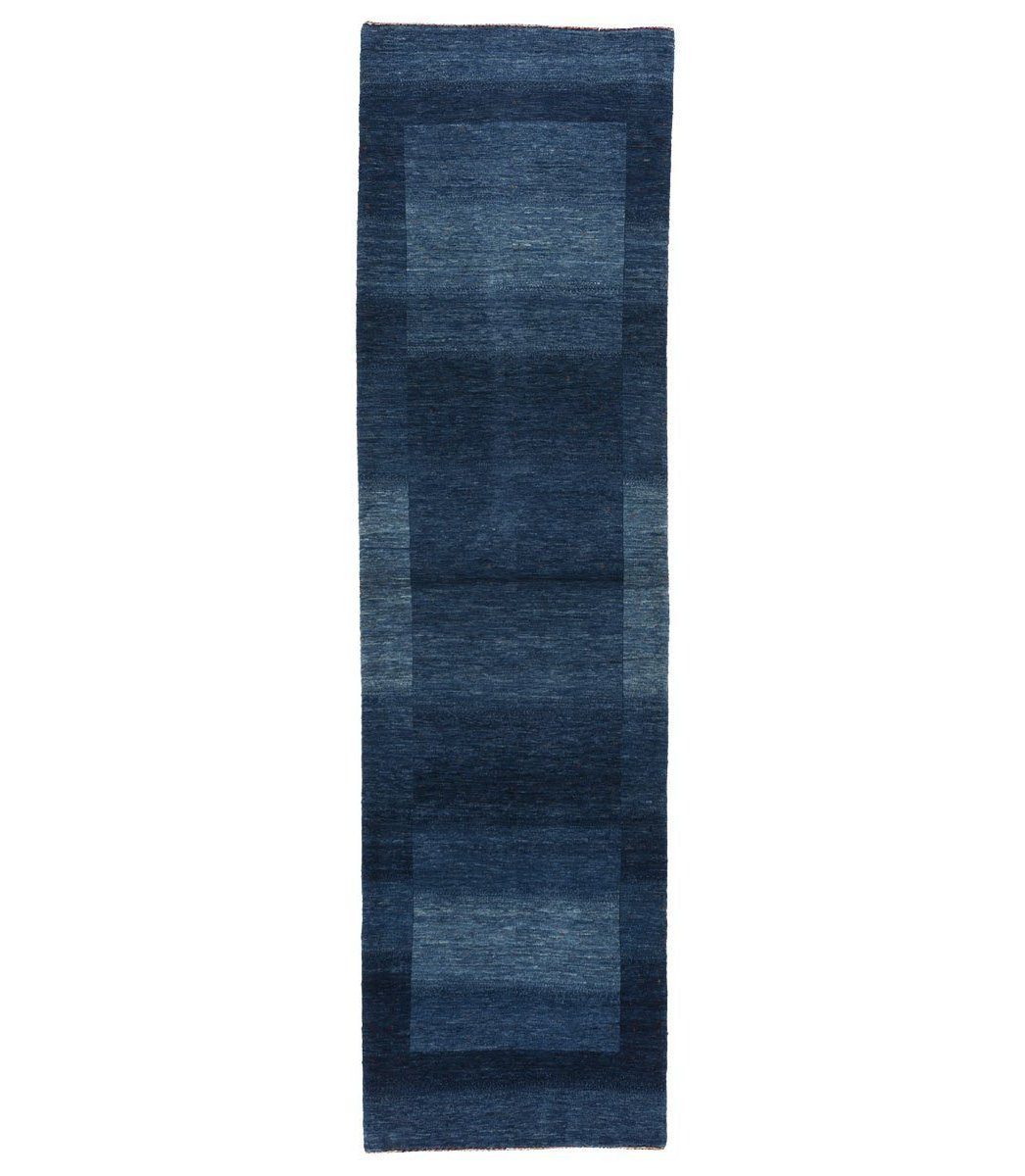 This runner rug measures 2' 11" x 10' 9", and was chosen by James Tufenkian for its unique design and vibrant colors. This gabbeh is hand knotted of 100% vegetable dyed wool woven into a subtle ombré pattern.