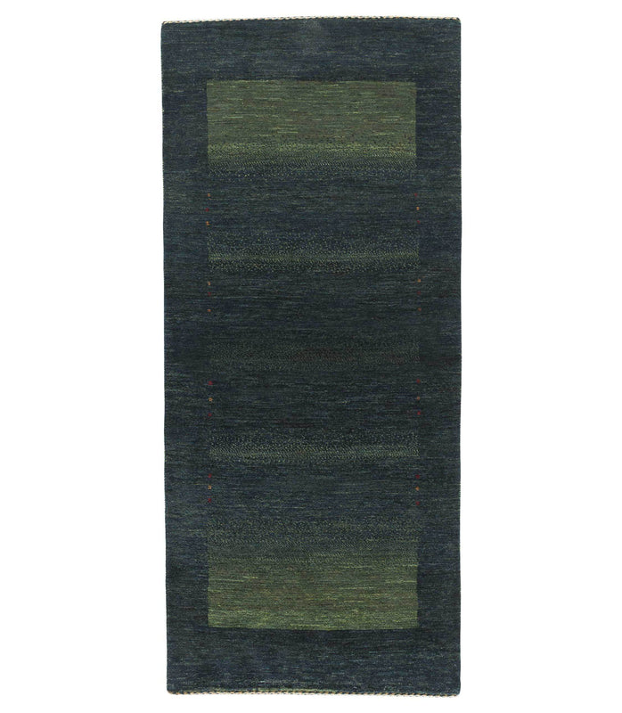 This one-of-a-kind Persian gabbeh is hand knotted using 100% Persian wool. It measures 2'9" x 6'3".