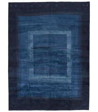 A beautiful mixture of deep indigo and cornflower blue, this saturated gabbeh loribaft would be a stunning centerpiece for a special room's decor. This one-of-a-kind heirloom quality piece was hand knotted of 100% Persian wool and measures approximately 9'11" x 13'1".