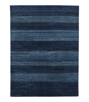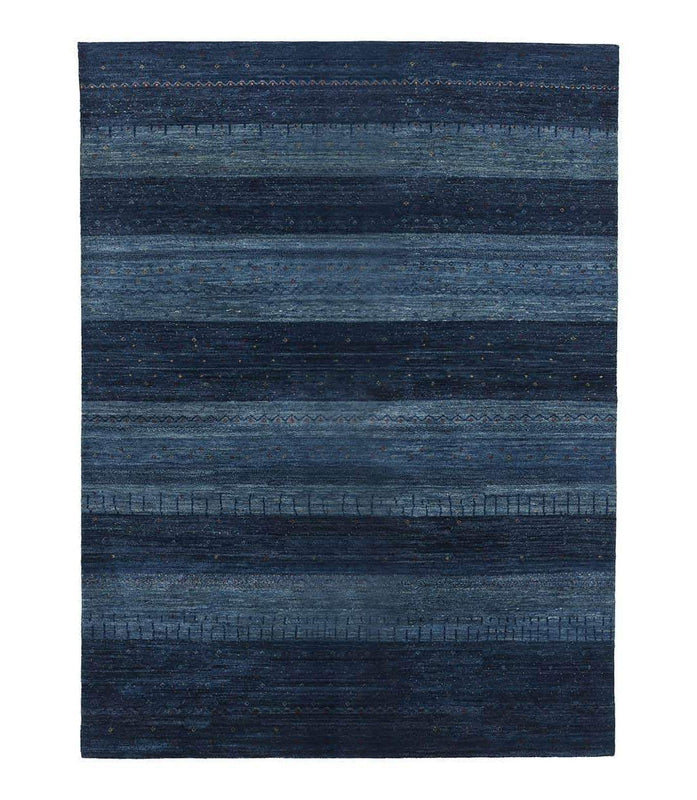 This Persian Gabbeh Seddeh was hand woven using 100% Persian wool. It measures 4'9" x 6'6". Tones of blue fade into one another in a subtle ombre pattern.