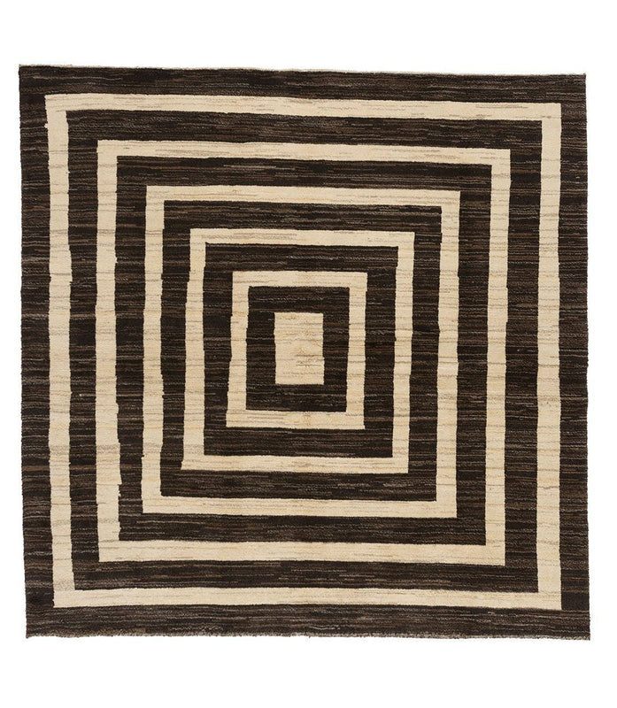 A hand knotted carpet made with undyed and unbleached Persian wool, this one of a kind piece measures 6'6" x 6'4".