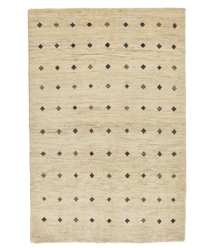 Hand knotted of 100% Persian wool, this one-of-a-kind gabbeh measures 3' 5" x 5' 3".