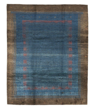 A one-of-a-kind piece, this Persian gabbeh was hand knotted using 100% vegetable-dyed Persian wool. This piece measures 7'10" x 9'8".