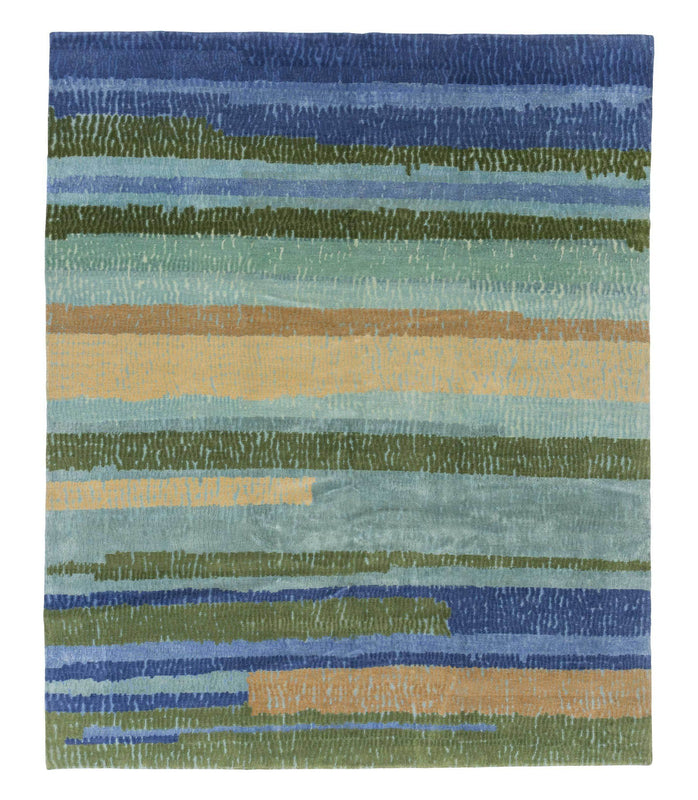 A one-of-a-kind sample piece, Prizm Blue Gold was designed by James Tufenkian but never went into production. It was made in Nepal using 100% Himalayan wool.