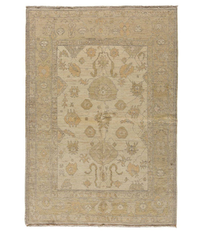 This hand knotted area rug was made by Tufenkian in Armenia using Armenian wool, and sheared down to a pile height under 1/2 of an inch. This 6x9 one of a kind rug is on hand in the USA is available for immediate shipment.