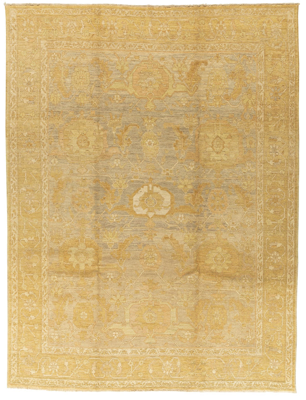 Golden sunwashed tones elevate this traditional Armenian border rug. Tribal motifs and fine detailing, handknotted in 100% wool. This version of the design has been sheared to a pile height under 1/2".