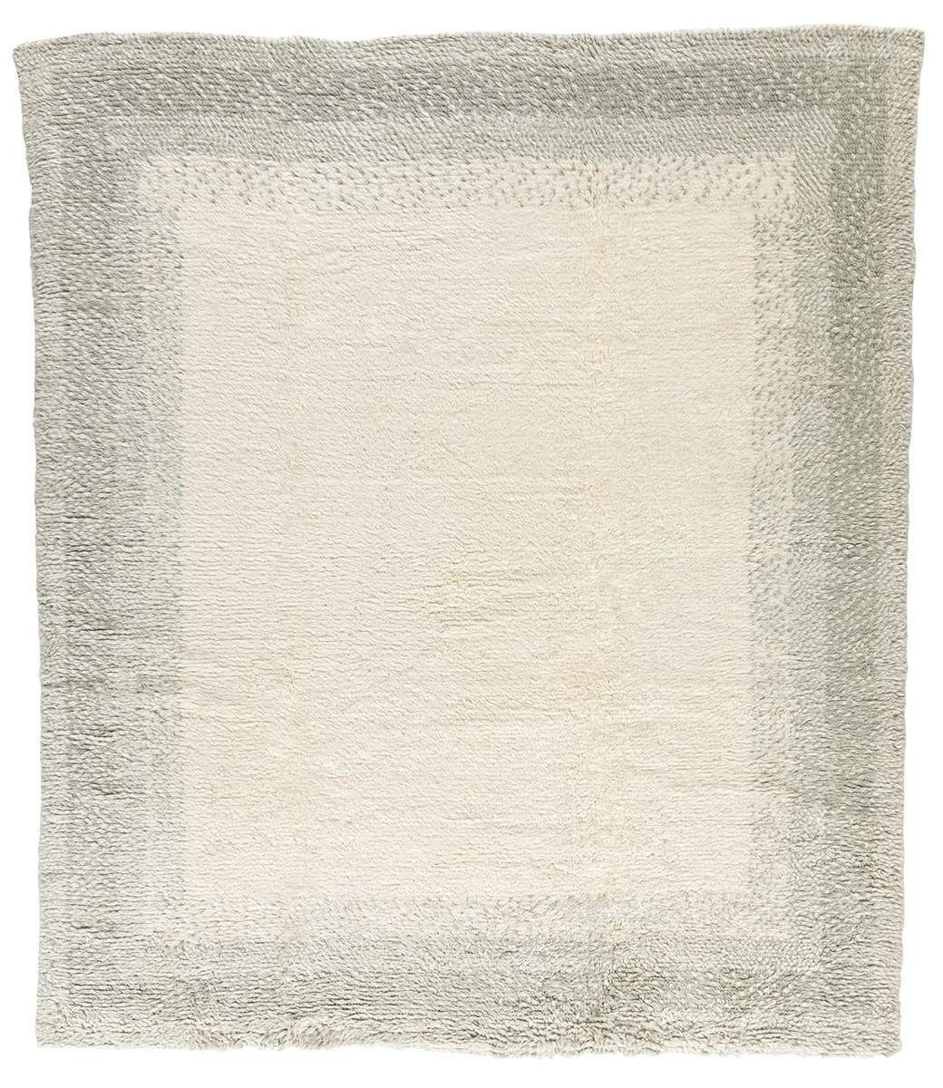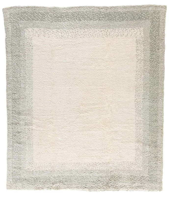 Speckle Sage is hand knotted of wool and mohair for a lustrous finish. This high pile shag style rug is the epitome of casual luxury. Still available in many sizes, this design is an amazing value. Crafted in India with a pile height just over 1/2 of an inch.