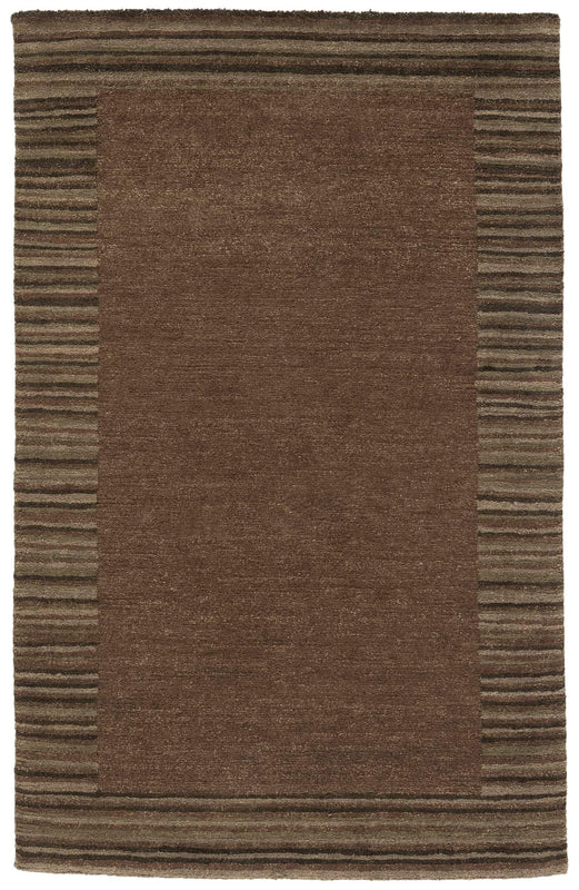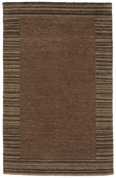 Subtly hued, intricate and layered, this rug is the definition of rustic sophistication. With a toffee brown field bordered by striations in a palate of cocoa and deep chocolate tones, finely handcrafted in Himalayan wool, this rug lends contemporary and chic style to any modern or traditional space. Only the 3x5 sizes remain, but are ideal for the side of the bed, a reading nook or small home office.