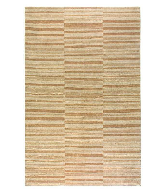 Subtly hued, intricate and layered, this rug is the definition of rustic sophistication. Striations in a palate of warm beige tones finely handcrafted in Himalayan wool lend contemporary and chic style to any modern or traditional dining room, living room or home office.
