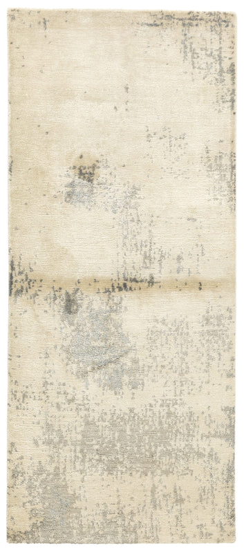 Illusive design exhibited in deconstructed luxury; an undefinable pattern to define interiors. Opulent contrast underlined in grey tones over a white field. This beautiful custom sized rug is based on our Summit design from our design catalog. It is hand knotted of Tufenkian Bamboo Silk and has an amazingly soft and lustrous finish. This one-of-a-kind rug measures approximately 2' 6" x 6'. Our rugs are normally available for delivery within 10 to 90 days. Contact us or Request a Quote for timing on the rug and size of your choice.