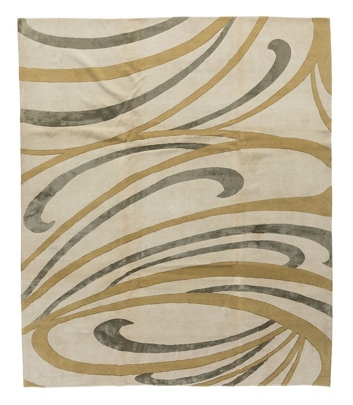 Hand knotted of Tibetan wool and silk, Swift Beige/ Black was crafted using our Setana weave. The pile height of this rug is 0.28".