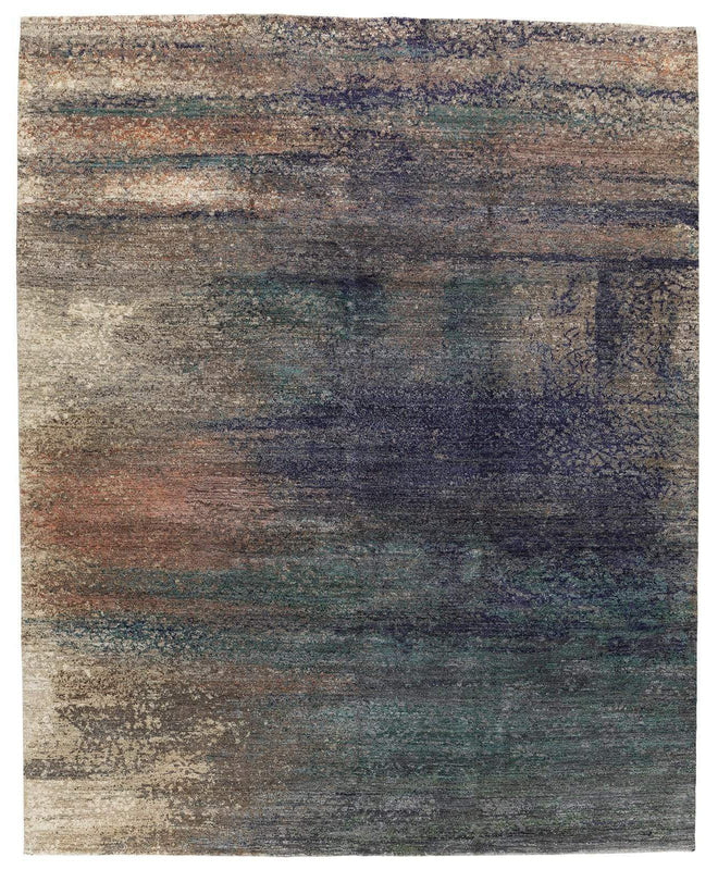 This organic design was hand knotted in India. A one-of-a-kind design sample, this rug is only available as an 8'x10'. Teramo Dusk is 100% wool with a pile height under 1/2 of an inch.