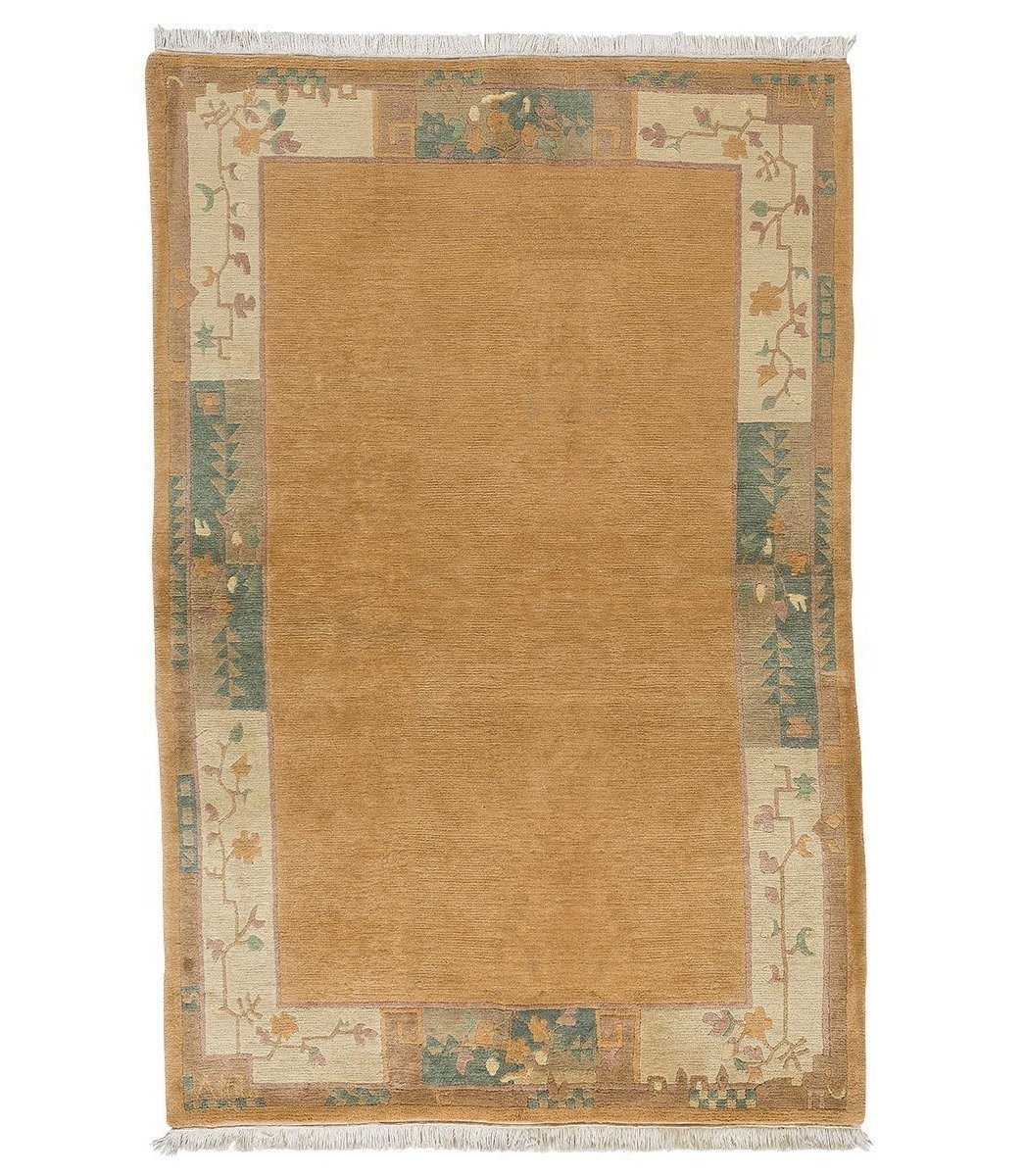 This Tibetan rug is a one-of-a-kind bordered rug that was hand knotted of 100% wool. It measures 6' x 9' and has a pile height of 0.41 inches. This rug was carefully hand crafted using our Timpa weave.