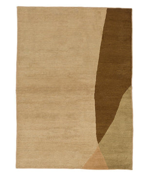 This Custom Color rug is a is one-of-a-kind piece that was hand-knotted in Nepal of 100% Tibetan wool using our Timpa weave. It has an average pile height of 0.41". This rug features a beige background with brown abstract accents and measures 4'3" X 6'.