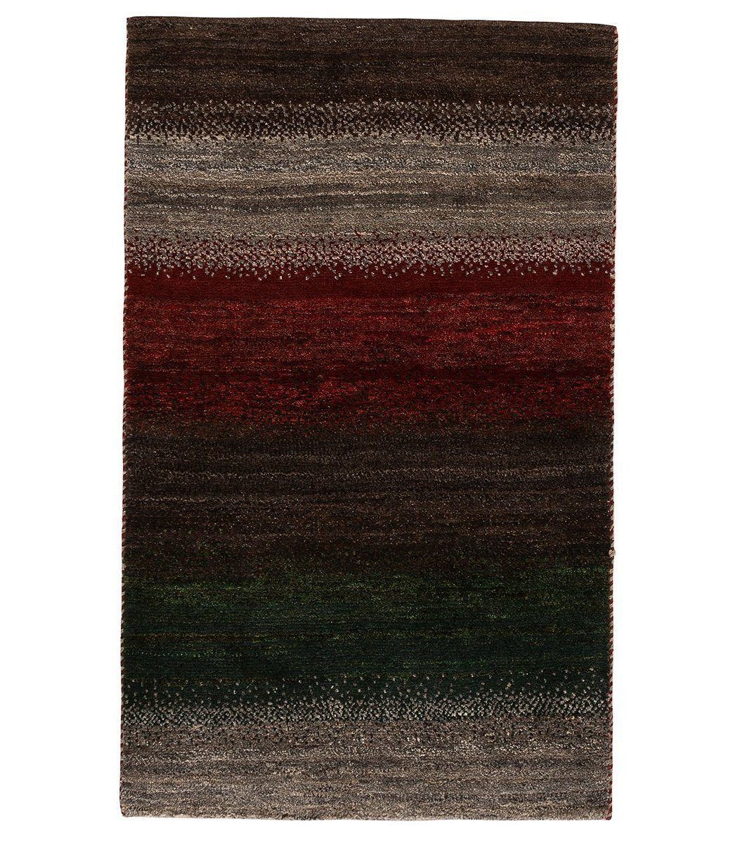 This one-of-a-kind gabbeh rug is hand knotted of 100% vegetable-dyed Persian wool. It measures 2' 7" x 4' 4".